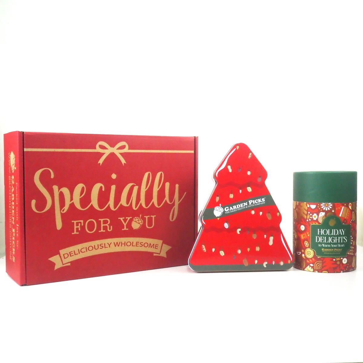 1. Holiday Signatures Christmas Tree Tin (105gm): Consists of Honey Mustard Soya Crisp, Cinnamon Sugar Breadstick and Pretzel